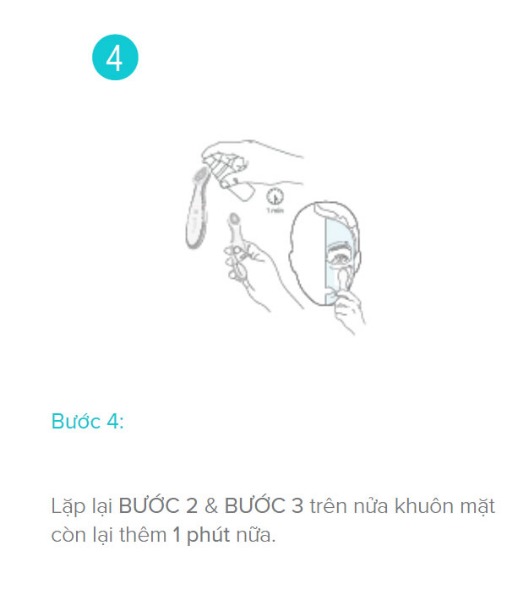 Ấn khởi động máy và bắt đầu chăm sóc da trong 1 phút theo hướng từ trong ra ngoài, từ dưới lên trên.