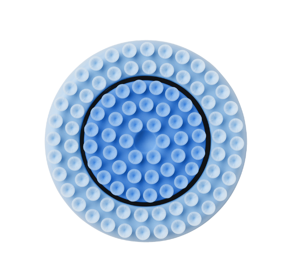 Mỗi đầu chăm sóc của thiết bị LumiSpa iO được làm bằng chất liệu Silicone mềm mại, chống mài mòn và chứa kèm các hạt bằng bạc.