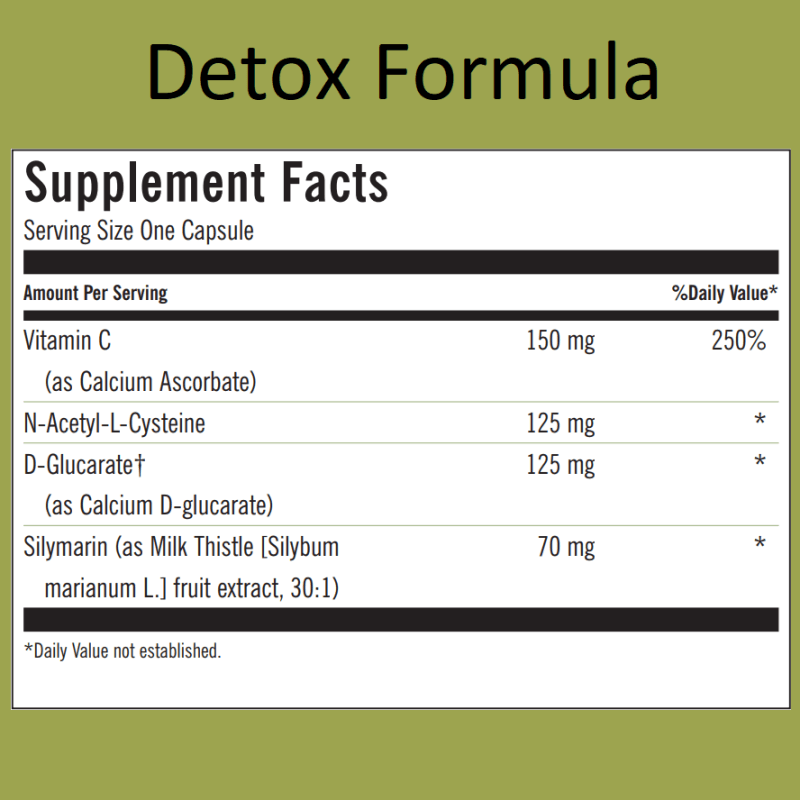 Cung cấp Vitamin C và N-acetyl-L-cysteine như là chất báo trước khẩu phần ăn đối với glutathione, chất chống oxy hóa quan trọng nhất của gan cho việc giải độc của cả giai đoạn 1 và giai đoạn 2.